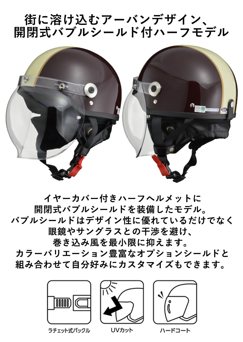 レディース/ハーフヘルメット/CROSS/バブルシールド付/リード工業/CR-760//女性用レディース/バイク用品/半キャップ/半帽/LEAD/リード工業/スクーター/原付用/125cc/イヤーカバー/男女兼用/