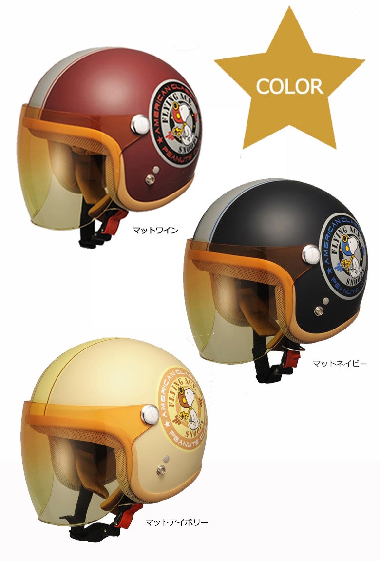 スヌーピーシールドヘルメット バイカー ジェットヘルメットオープンフェイスヘルメット/シールド付き/バイク/レディース/女性用/スヌーピー/キャラクター