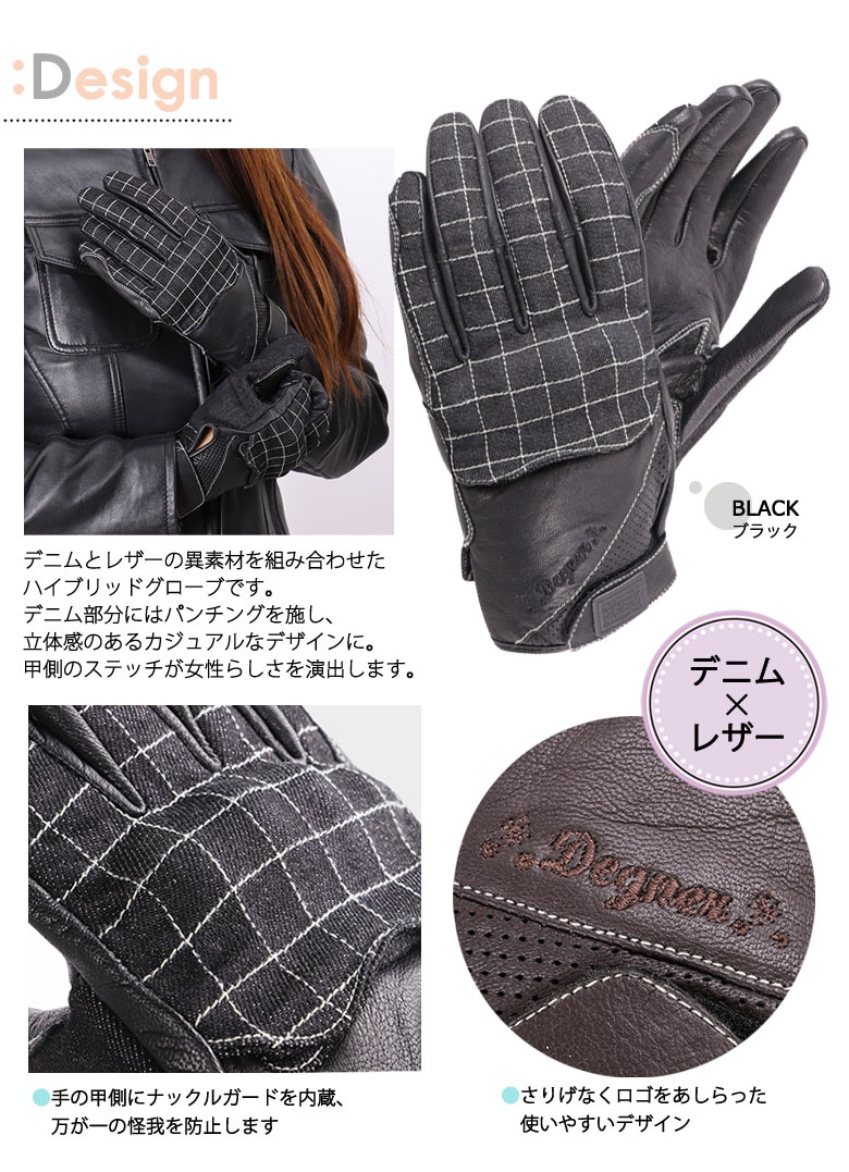 | 商品名 | 【DEGNER(デグナー)】レザーデニムコンビレディースグローブ【FRTG-55】 |