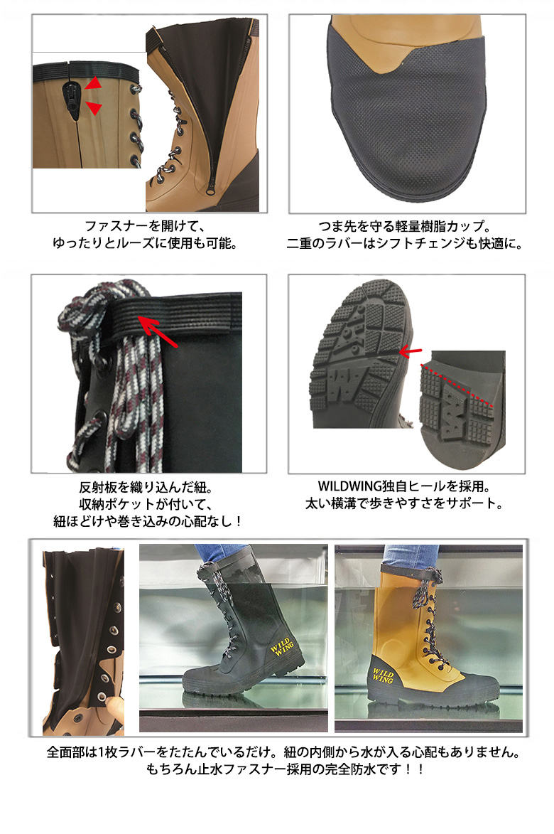 【送料無料】 WILDWING ワイルドウイング レインブーツ フラミンゴ RIN-001 完全防水 ブーツ シューズ おすすめ バイク キャンプ トレッキング 釣り 黒 ベージュ 取寄品取寄品