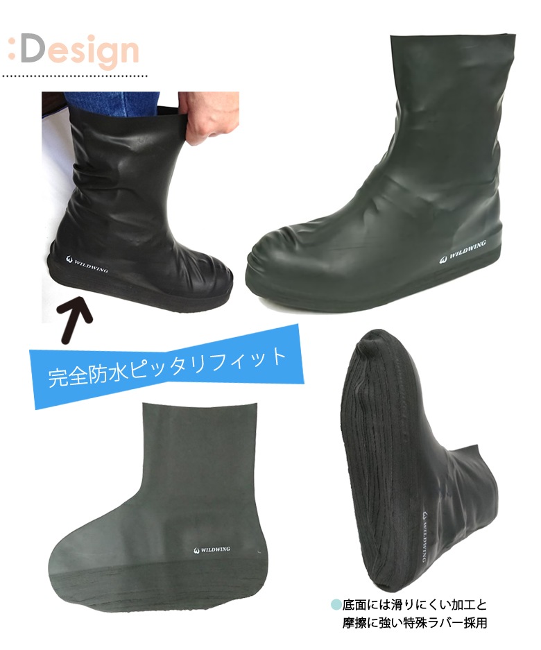 WILDWING ワイルドウイング レインブーツカバー SC-001 バイク用 ブーツ シューズ 携帯 完全防水 汎用 滑りにくい ツーリング準備 黒 取寄品取寄品