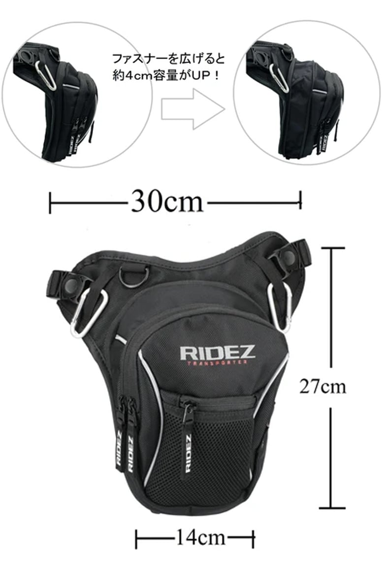RIDEZ(ライズ)トランスポーター レッグバッグ RTS04 バイク レッグバッグ 拡張可能 ツーリング ブラック オールシーズン 取寄品