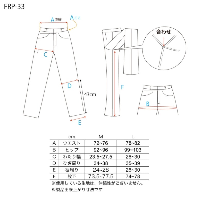 | 仕様 | ・牛革ヒートガード付き ・膝上シャーリング ・膝、腰にプロテクター標準装備(取り外し可能) |
