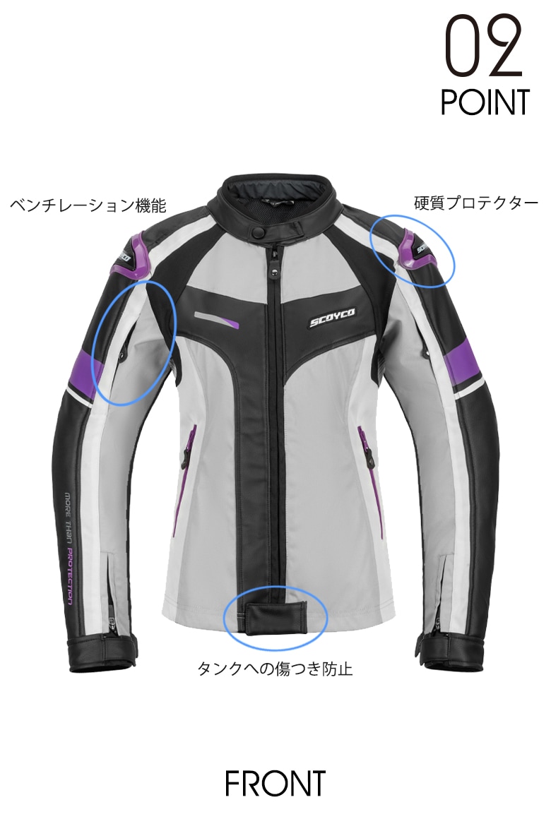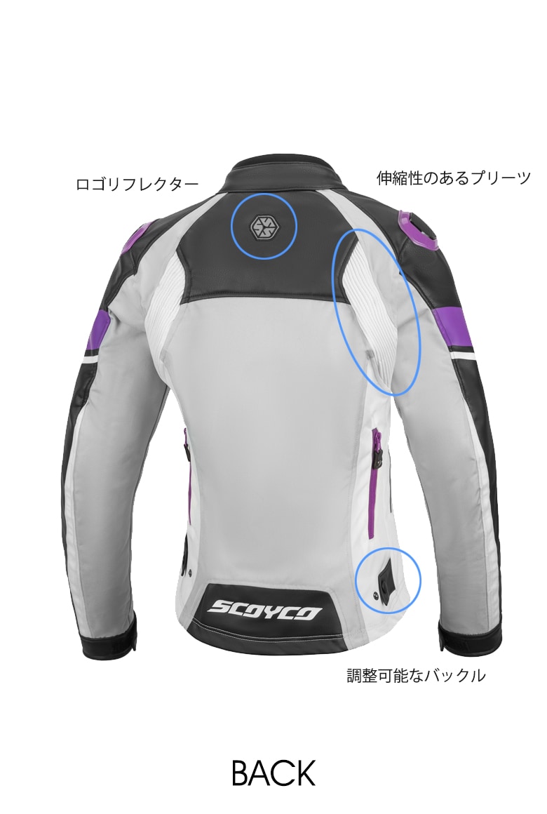 トップ > バイクパーツ > バイクウェア > ジャケット > 【処分特価/サイズ交換1回無料】SCOYCO(スコイコ)レディースバイクジャケット JK152W バイク用 女性用 派手 紫 PURPLE(パープル) 3シーズン