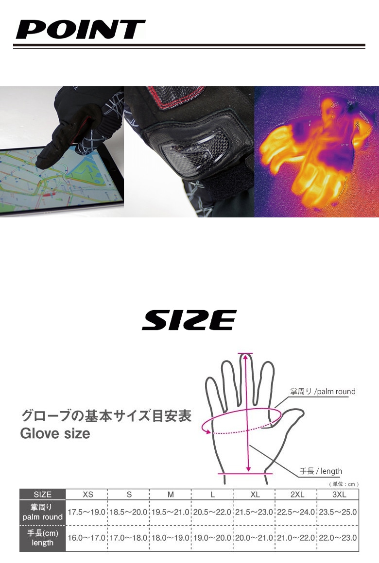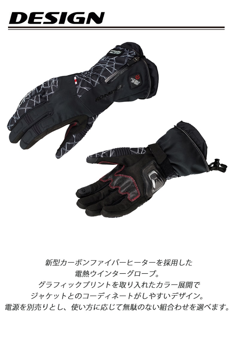 新型カーボンファイバーヒーターを採用した電熱ウインターグローブ。