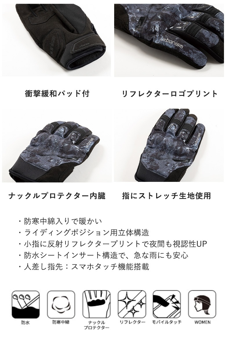 【在庫処分特価】RBANISM(アーバニズム)アーバンプロテクトウィンターグローブ UNG260 レディースバイク用品 防水・防寒 手袋 M/L 秋冬 取寄品