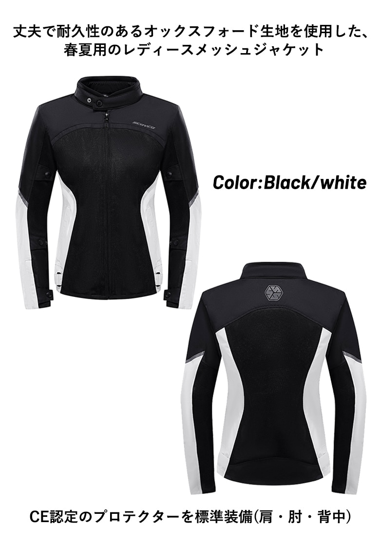 【サイズ交換1回無料】レディースメッシュバイクジャケット SCOYCO(スコイコ)JK206W 通気性春夏プロテクター付き シンプル 女性用 プロテクター付
