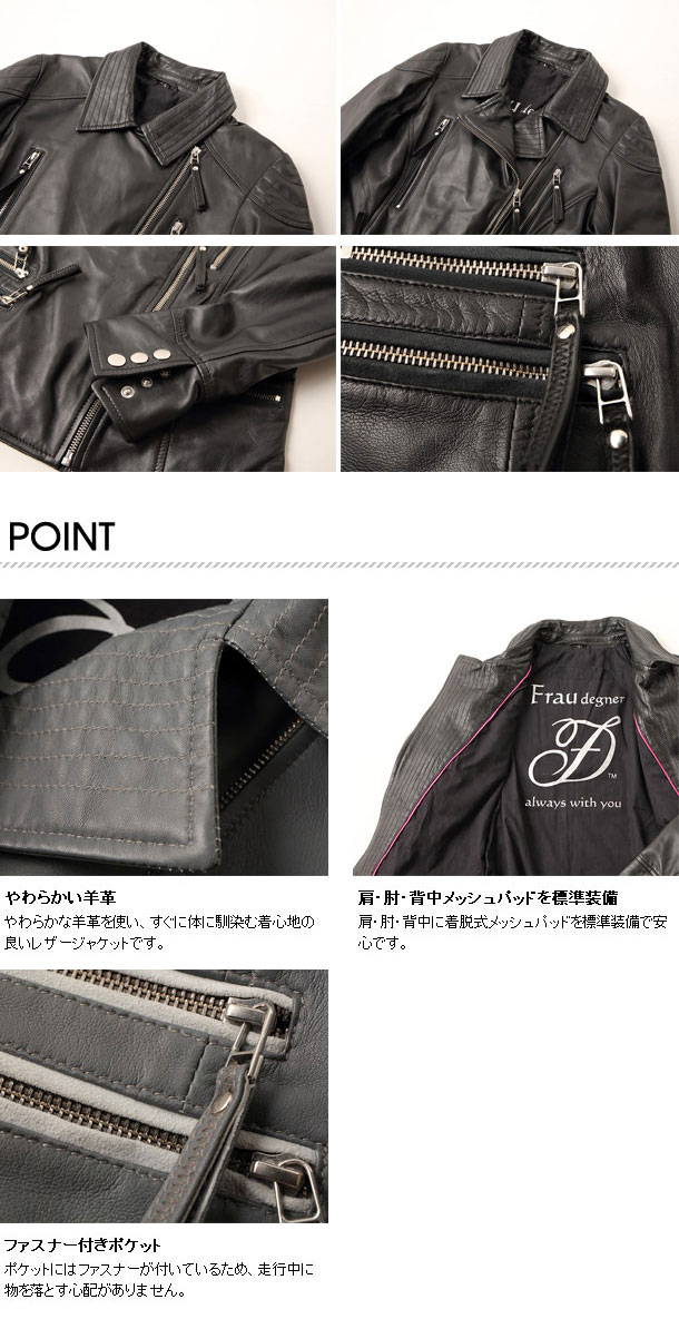 トップ > バイクパーツ > バイクウェア > ジャケット > DEGNER Ladies Leather Jacket レディースレザージャケット FR16SJ-4 レザージャケット/本革/レディース/春夏/【ブラック廃番】