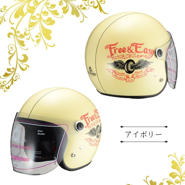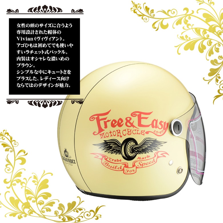 トップ > ブランド > R > シュガーライズヘルメット ヴィヴィアン Free&Easy レディース バイク ヘルメット シールド標準装備 57-58cm アイボリー ブラック/取寄品