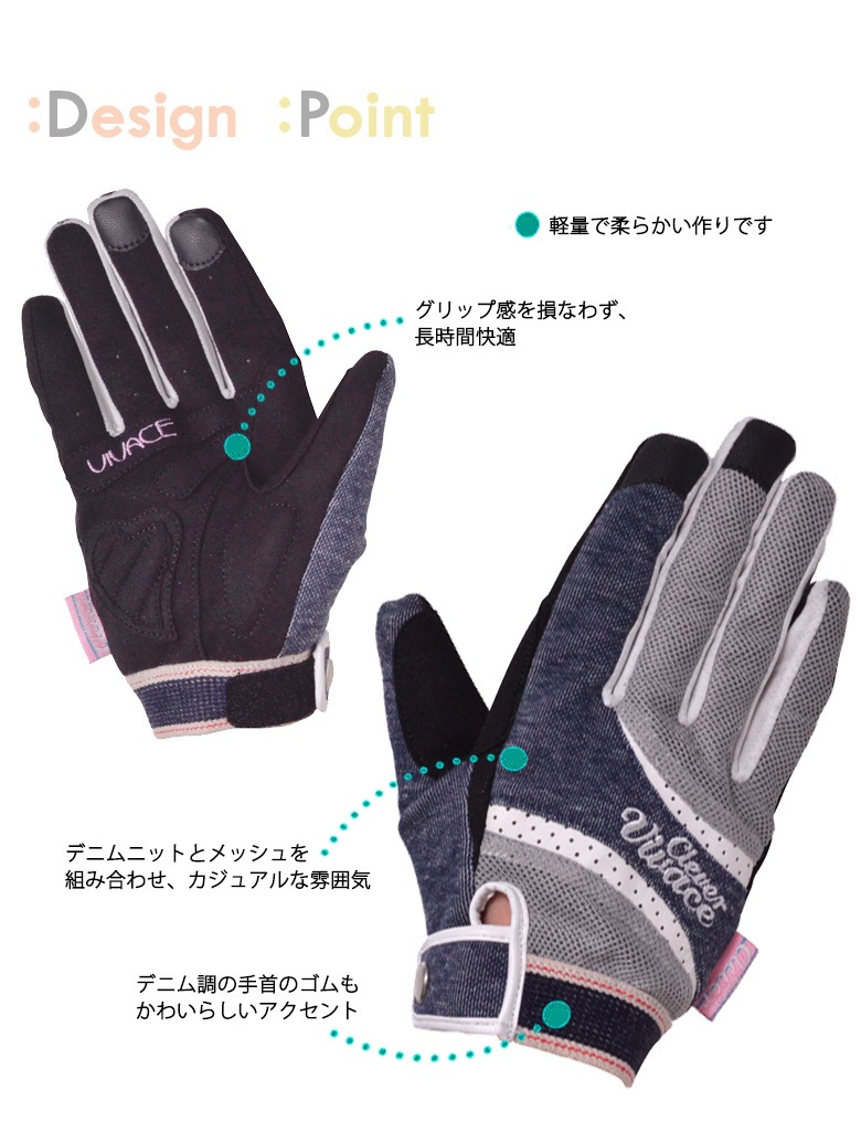 バイク用品 レディース グローブ バイク 用品 女性用 春 夏 取寄品 涼しい 軽量 カジュアル デニム おしゃれ