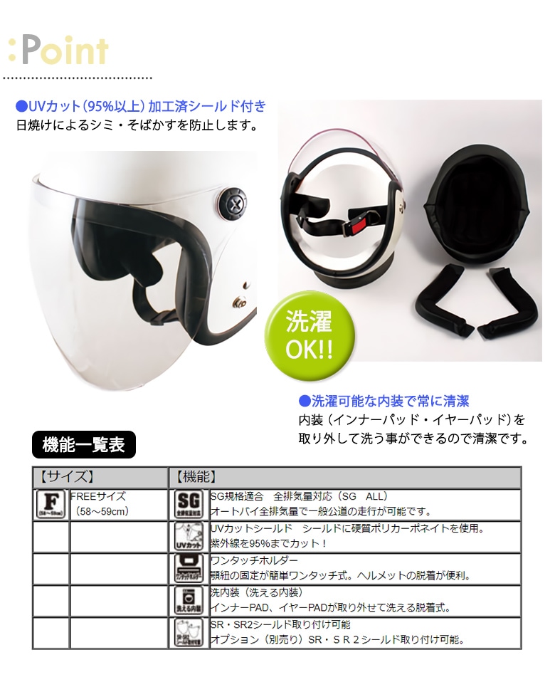 トップ > ブランド > S > TNK工業(スピードピット)(スピードピット)SPEEDPIT スモールジェットヘルメット シングルカラー JL-65SR バイク ヘルメット レディース シールド付き UVカット 白 黒 取寄品