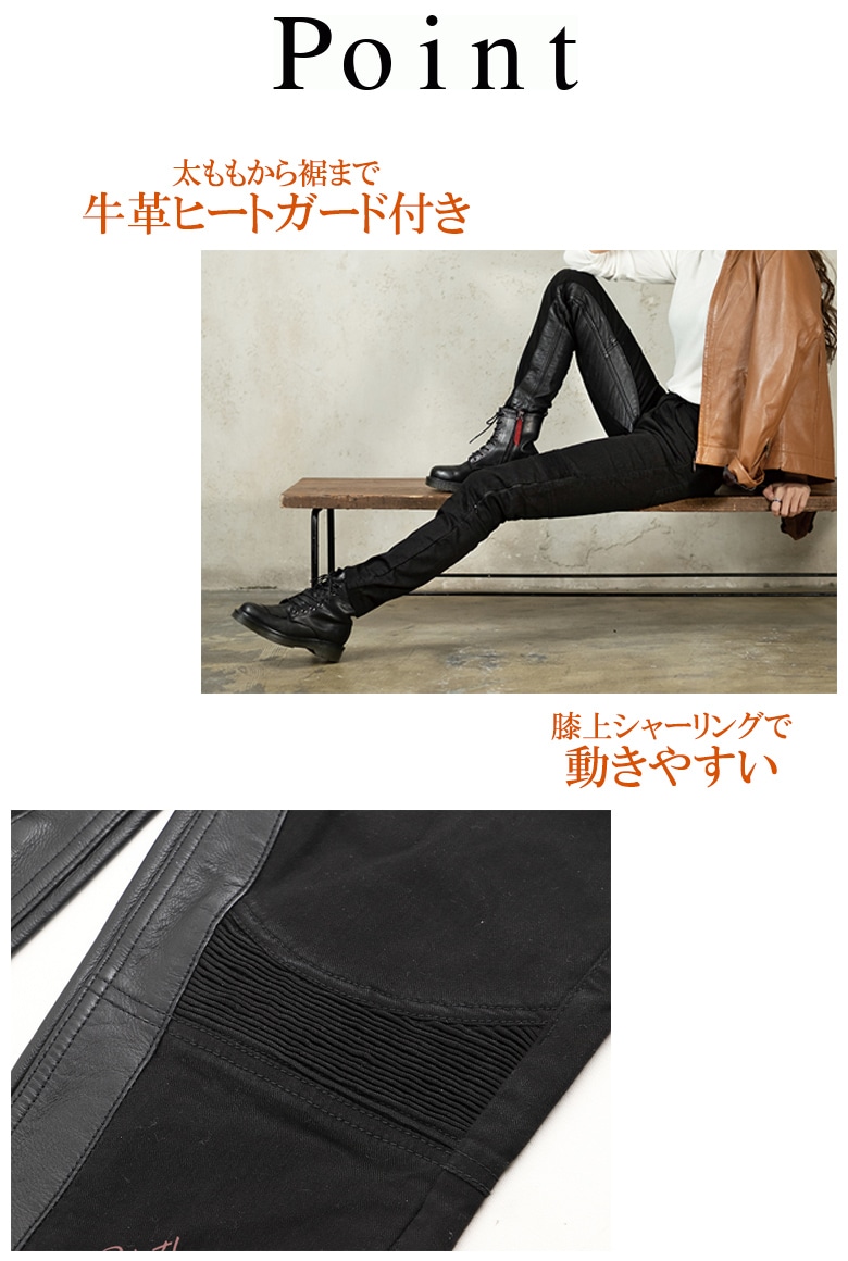 トップ > バイクパーツ > バイクウェア > パンツ > 【送料無料】DEGNER(デグナー)レディースコットンパンツ FRP-31 バイク パンツ レザーパンツ シャーリング 牛革ヒートガード ツーリング ブラック 秋冬 取寄品