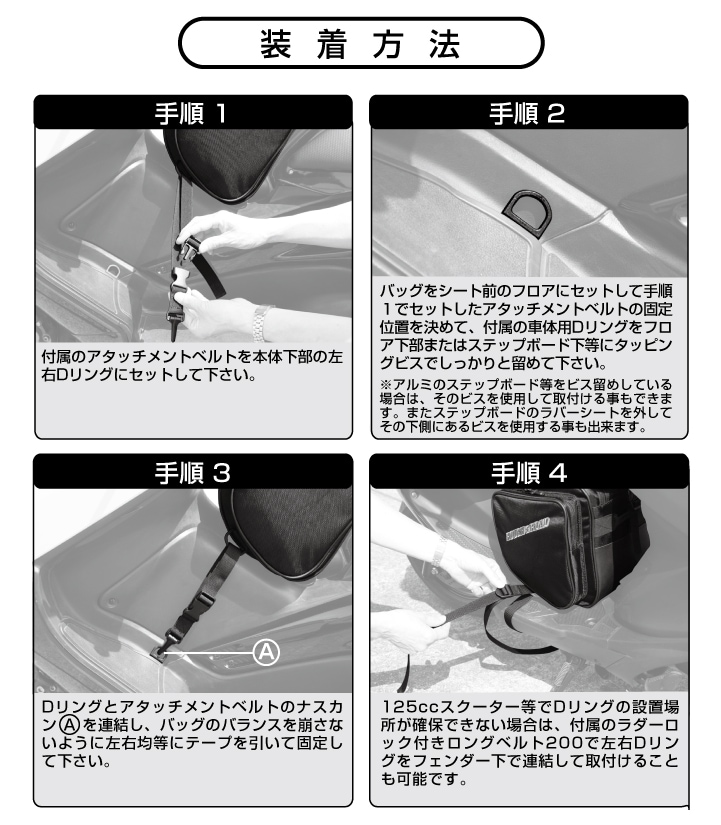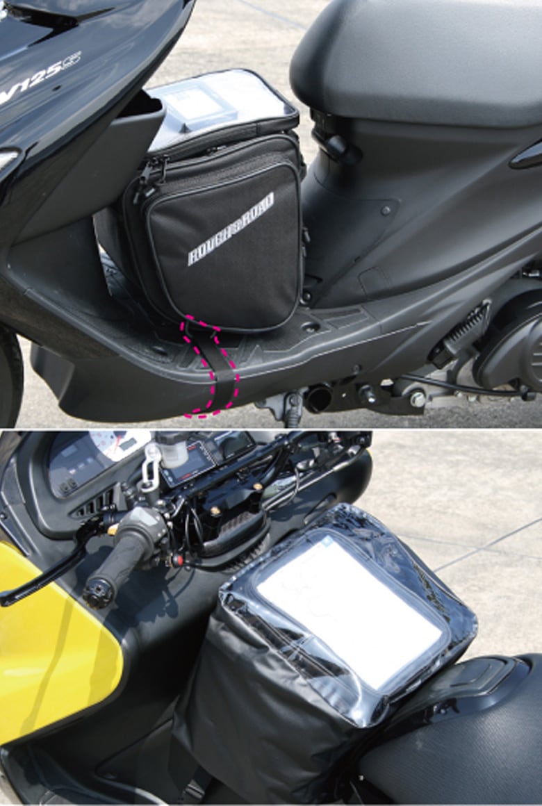 トップ > ブランド > R > ROUGH&ROAD(ラフ&ロード)フロントフロアバッグ RR9227 バイク用品 車載用バッグ タンクバッグ ハンターカブ カブ スクーター レインカバー付き ブラック 取寄品