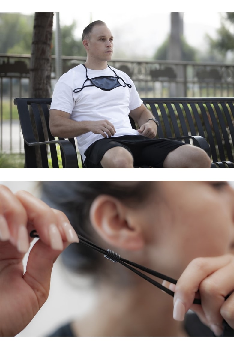 耳ひもの長さを調整できる耳ひもアジャスターや首かけができるアクションストラップなど、