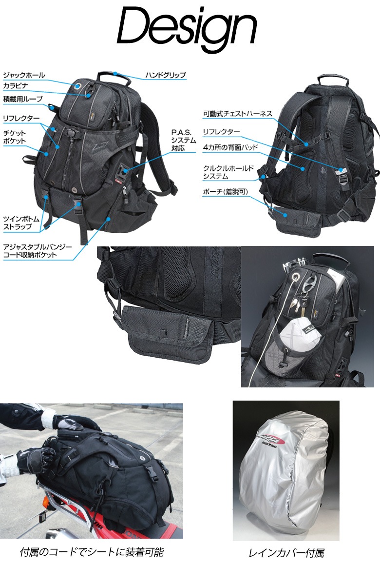 トップ > バイクパーツ > バイク用バッグ > バックパック、デイバッグ > 【送料無料】ROUGH&ROAD(ラフ&ロード)SCHWARZ R アタックザック RR9557 バイク用品 バックパック CORDURA レインカバー付き 30L 秋冬 取寄品