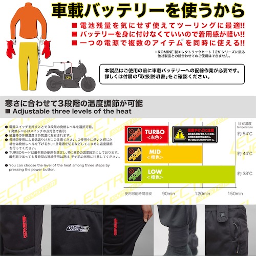 トップ > バイクパーツ > バイクウェア > パンツ > レディース電熱インナーパンツKOMINE(コミネ)EK-107/08-107 エレクトリックインナーパンツ12V 秋冬 女性用 保温 取寄品