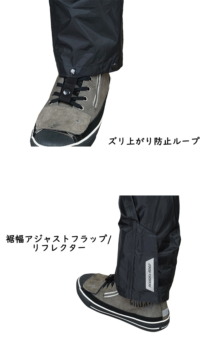 ROUGH&ROAD(ラフ&ロード)エマージェンシーパンツ RR7860 バイク用品 レインパンツ オーバーパンツ 携帯/コンパクト 防風/防水/撥水 ブラック オールシーズン 取寄品