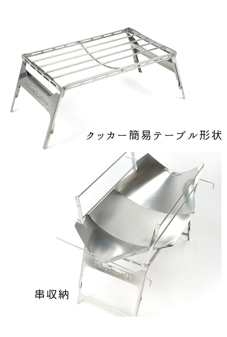 1台3役 450mmサイズの薪もOKな3枚火床を採用 Phoenixrise(フェニックスライズ)フェニックスグリル3枚火床 PHR-TBG02 キャンプ用品 焚火台 軽量 簡単 簡易テーブル キャンツー シルバー 取寄品