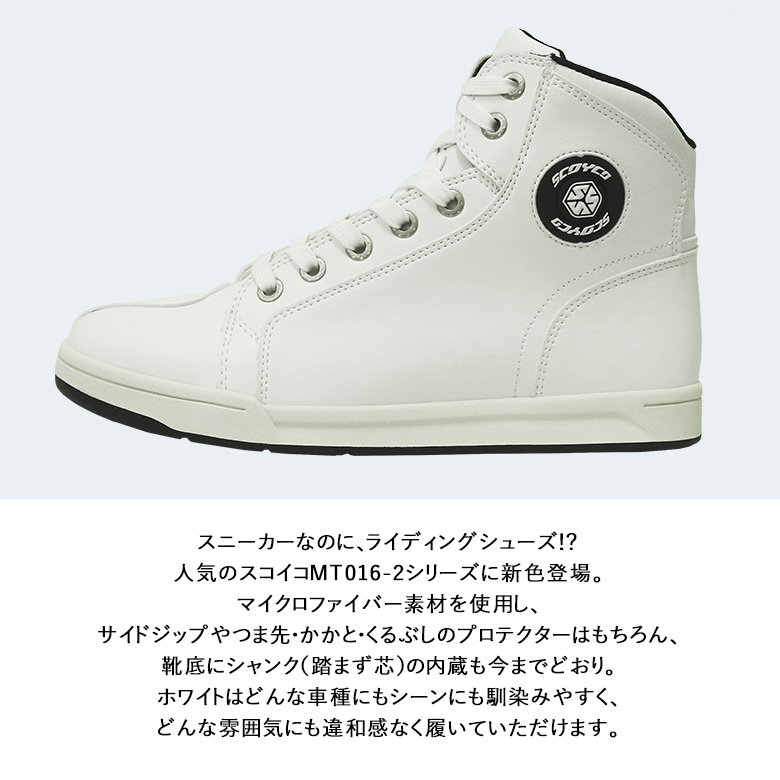 【送料無料】SCOYCO(スコイコ)カジュアルライディングシューズ MT016-2 バイク シューズ スニーカー 人気 レザー調 ライディング ツーリング 白 ホワイト