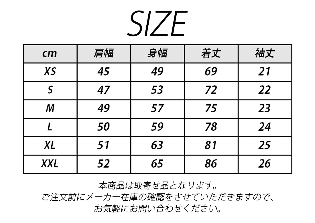 | サイズ | XS/S/M/L/XL/XXL/XXXL |