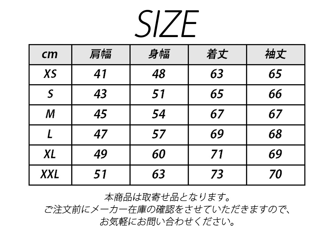 | サイズ | XS/S/M/L/XL/XXL/XXXL |
