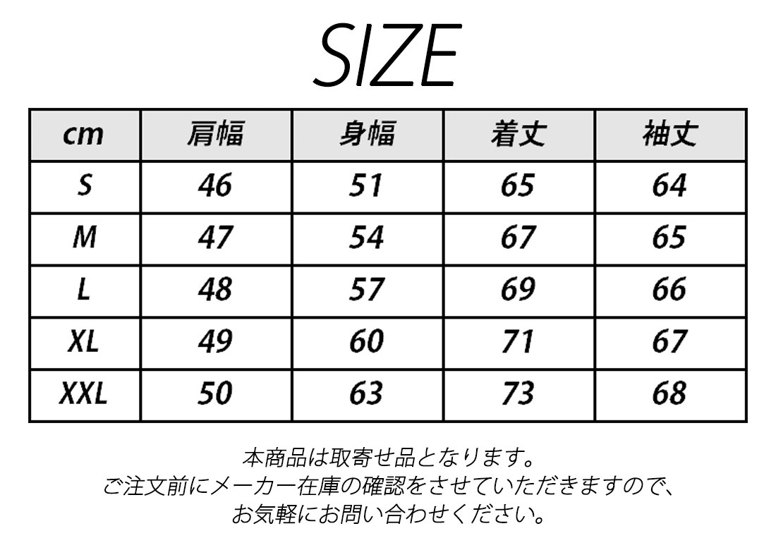 | サイズ | XS/S/M/L/XL/XXL/XXXL |