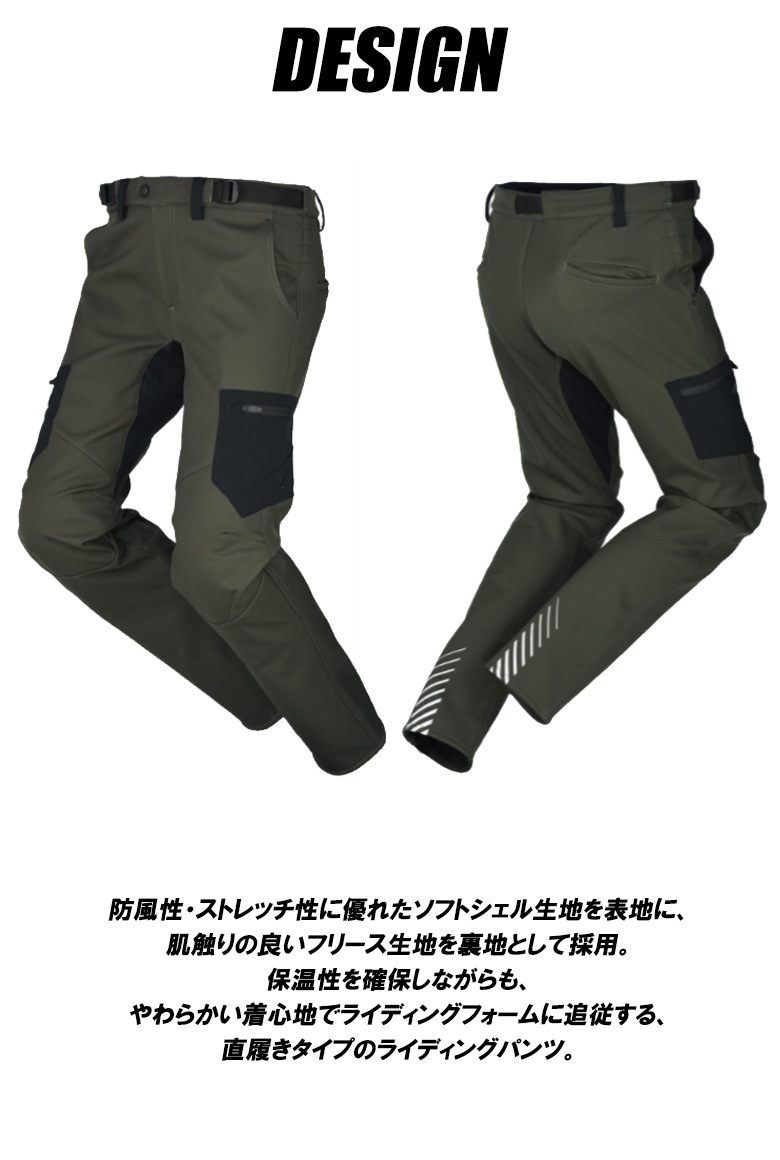 保温性を確保しながらも、やわらかい着心地でライディングフォームに追従する、直履きタイプのライディングパンツ。