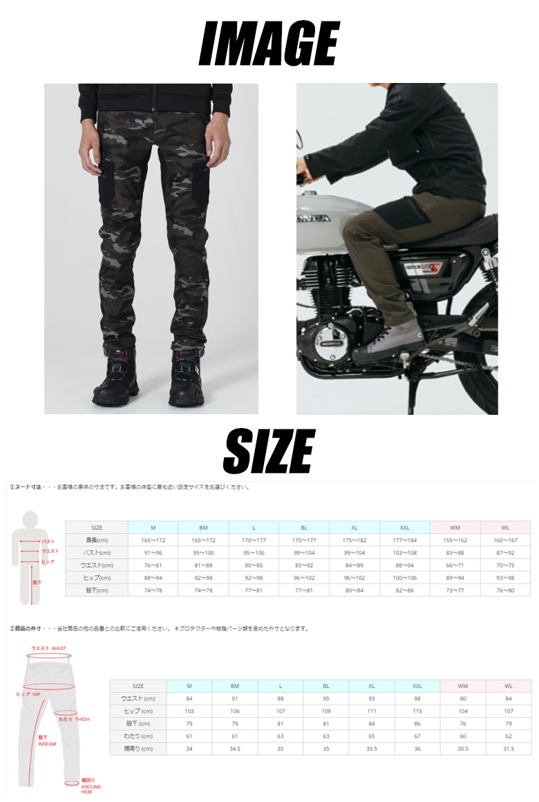 | 仕様 | ※本製品は当社製他のライディングパンツよりもスリムなフィット感となっております。