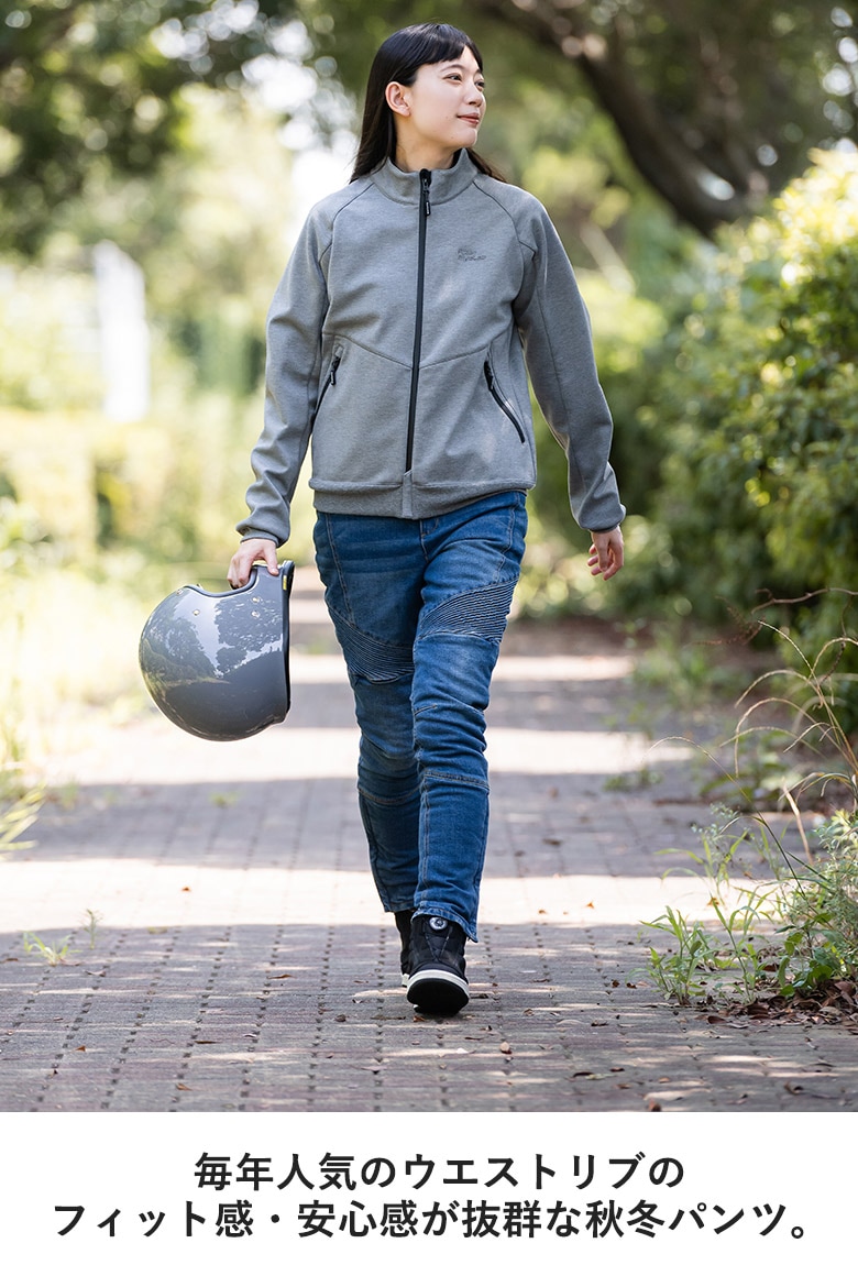 | 仕様 | ーRIDDING POINTー ・レディース専用 腰/膝プロテクター付き ・防風加工の表地と中綿キルティンク?裏地で暖かい ・ライディングポジション用立体構造 ・伸縮性が高いストレッチ生地と膝上シャーリングで、膝を曲げやすい ・デニムもストレッチライトオンステ?ニム使用で、動きやすい ・長時間ライディングのストレス減少 〜PROTECTOR・着脱可能〜 ・レディース専用プロテクター ・腰/膝プロテクター標準装備 ・膝プロテクターは、着用したまま取り出し可能な外入れタイプ ・膝プロテクター位置は、ベルクロで一段階調整可能 |