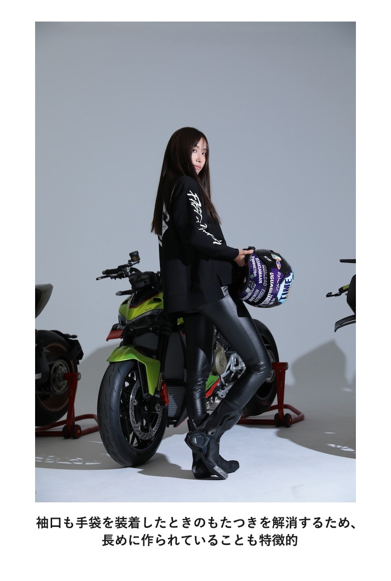着丈の前後の長さ、切り返しには、バイクに乗った時のフォルムのかっこよさを考え抜いて作られました。