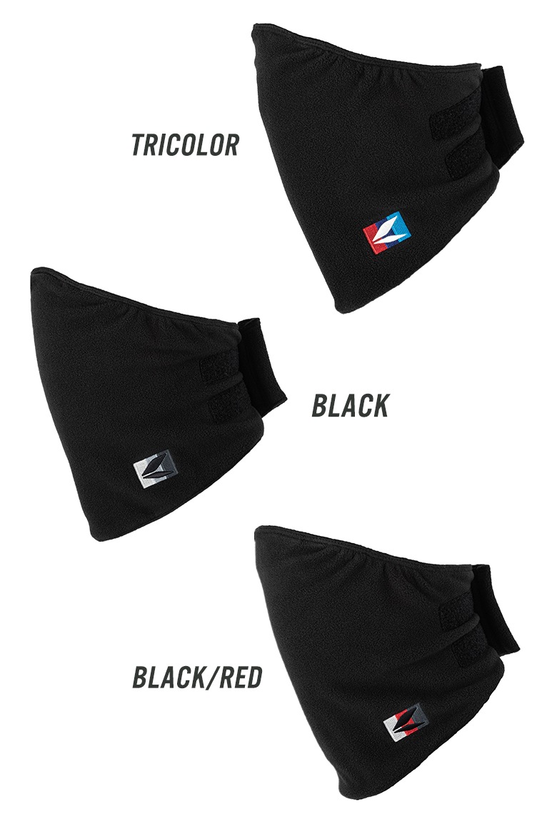 ヘルメットを被ったままの着脱も可能な、巻きつけタイプのフェイスマスク。