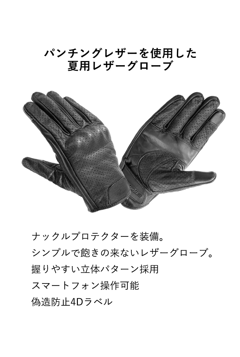 パンチングレザーを使用した夏用レザーグローブ。ナックルプロテクターを装備。シンプルで飽きの来ないレザーグローブ。