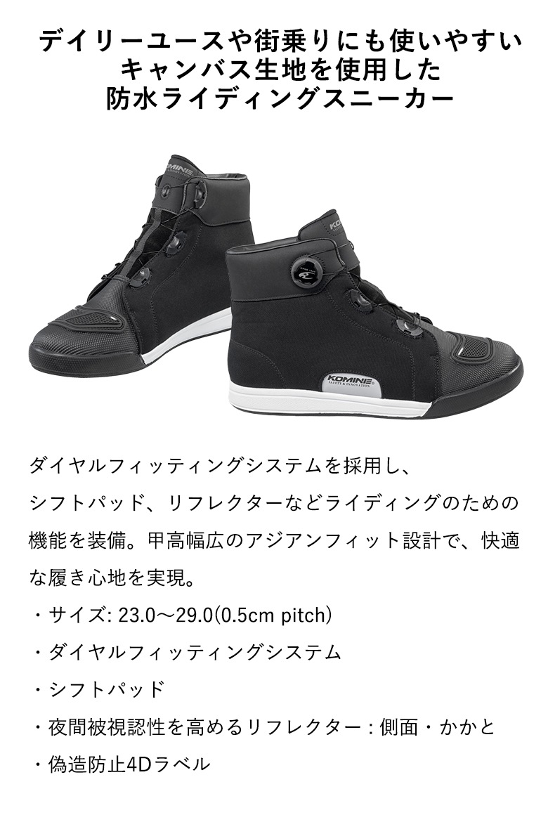 KOMINE(コミネ)ダイヤルフィットWPライディングスニーカー BK-301 バイクシューズ 23cm〜29cm 防水 カジュアル ダイヤル式