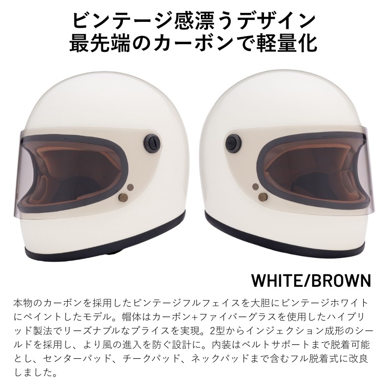 本物のカーボンを採用したビンテージフルフェイスを大胆にビンテージホワイトにペイントしたモデル。