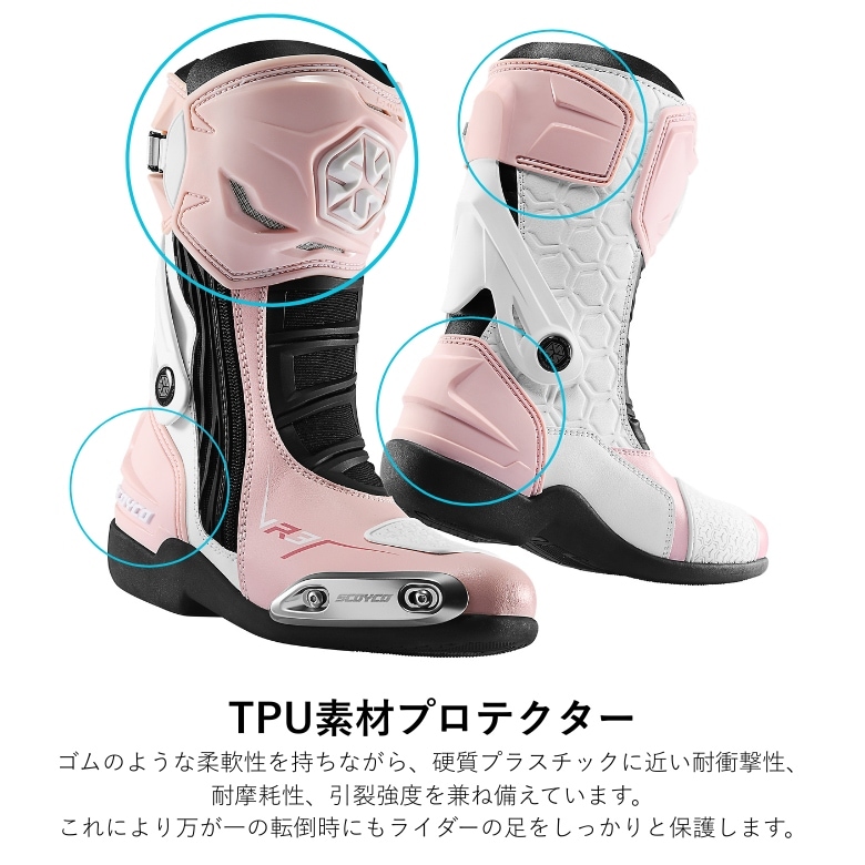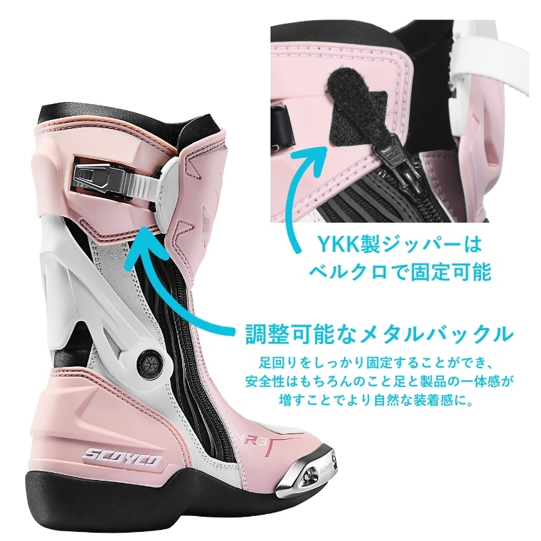 レディースレーシングブーツ バイクSCOYCO(スコイコ)MR003Wオンロード サーキット走行 レース スポーティ 初心者 エントリーモデル 女性