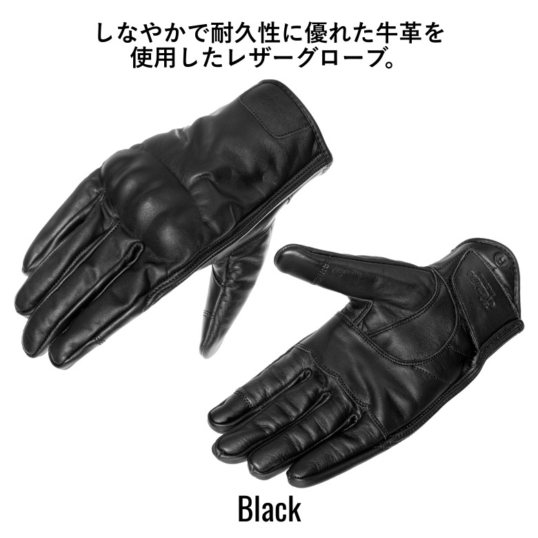 しなやかで耐久性に優れた牛革を使用したレザーグローブ。