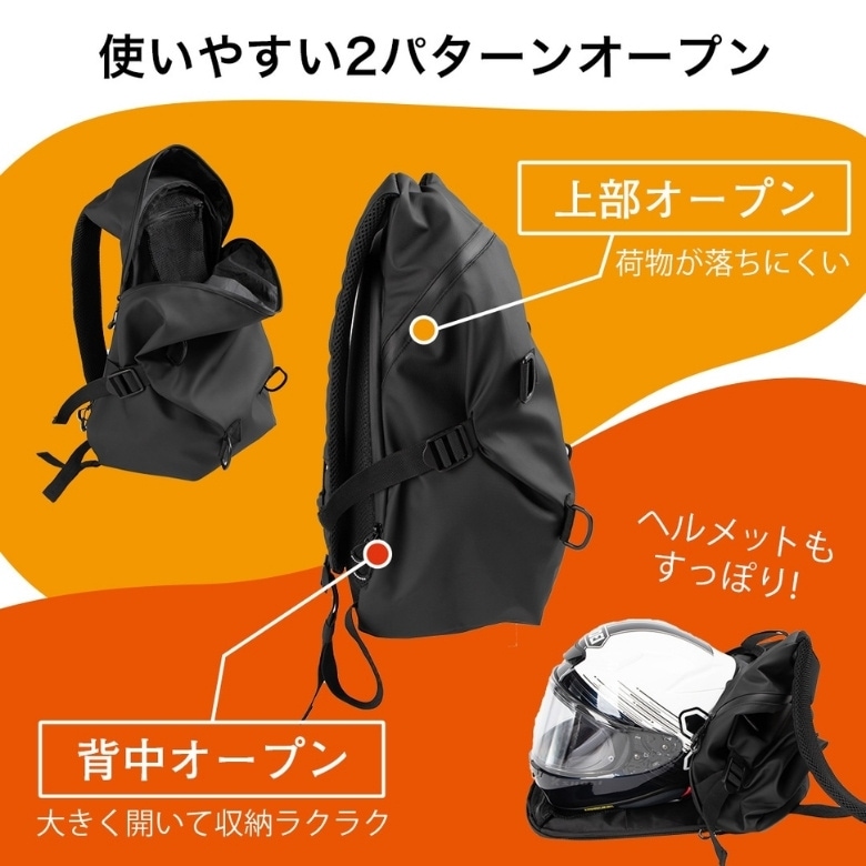 2パターンオープンで、ヘルメットもすっぽり収まるバックパック。